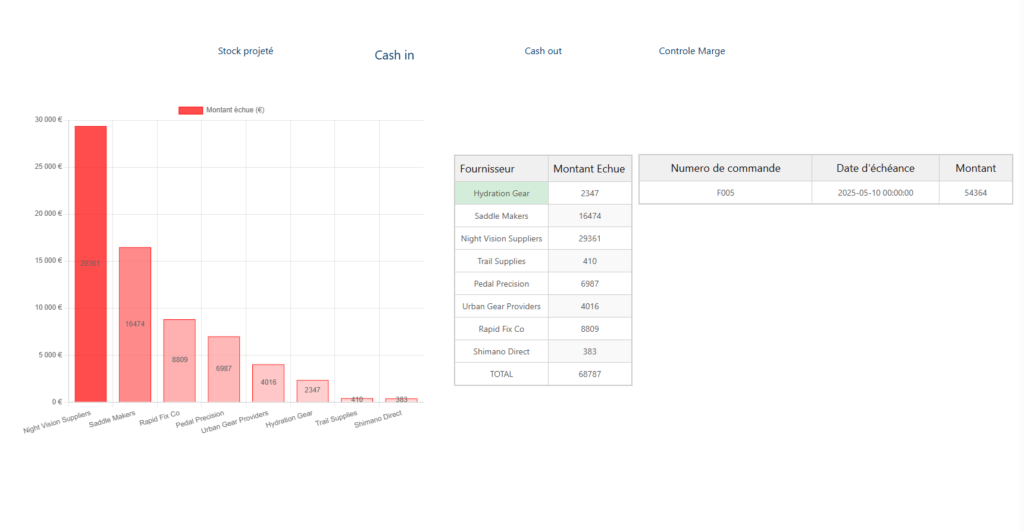 Visibilité à 12 mois sur l’évolution des stocks, détectent instantanément toute hausse anormale de valeur et mettent en lumière les références à risque. Ils intègrent également un suivi structuré du recouvrement clients et des factures fournisseurs à venir, permettant un pilotage maîtrisé du cash et des actions rapides et ciblées.