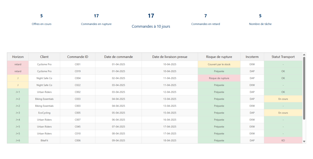 Suivez vos commandes et devis clients pour anticiper les retards et mettre en place des actions préventives.
